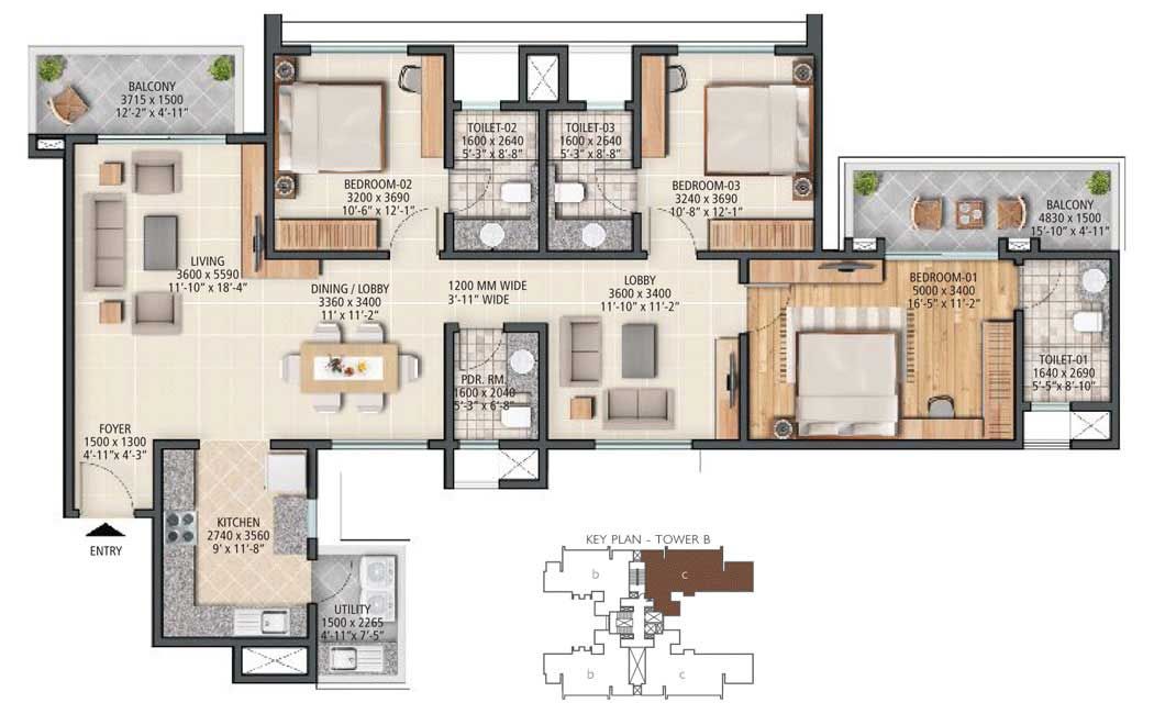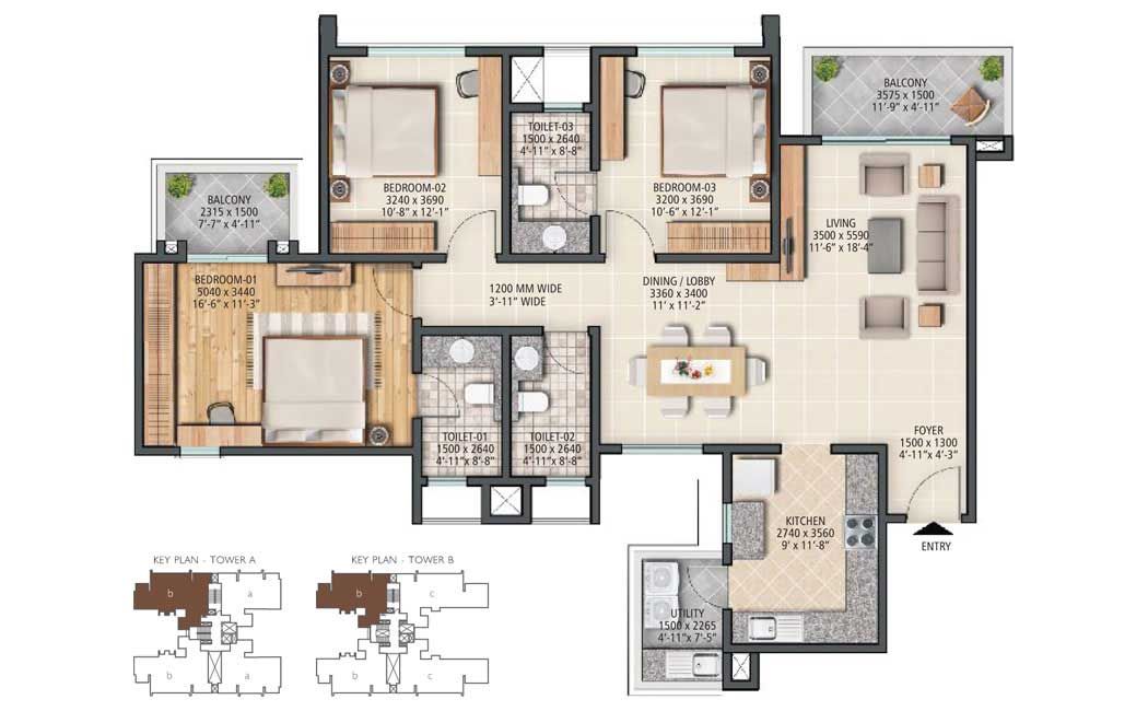 The residences at Sobha City encompass a diverse range of 2, 3, and 4 BHK apartments, meticulously crafted to the highest standards of quality and design that Sobha is renowned for. Each home is a sanctuary of comfort, featuring efficient layouts that maximize space utilization, large windows and sliding doors for abundant natural light and ventilation, and premium fittings that reflect exquisite taste. The intelligent design ensures privacy with well-spaced towers and no common walls between apartments, providing an exclusive living experience.