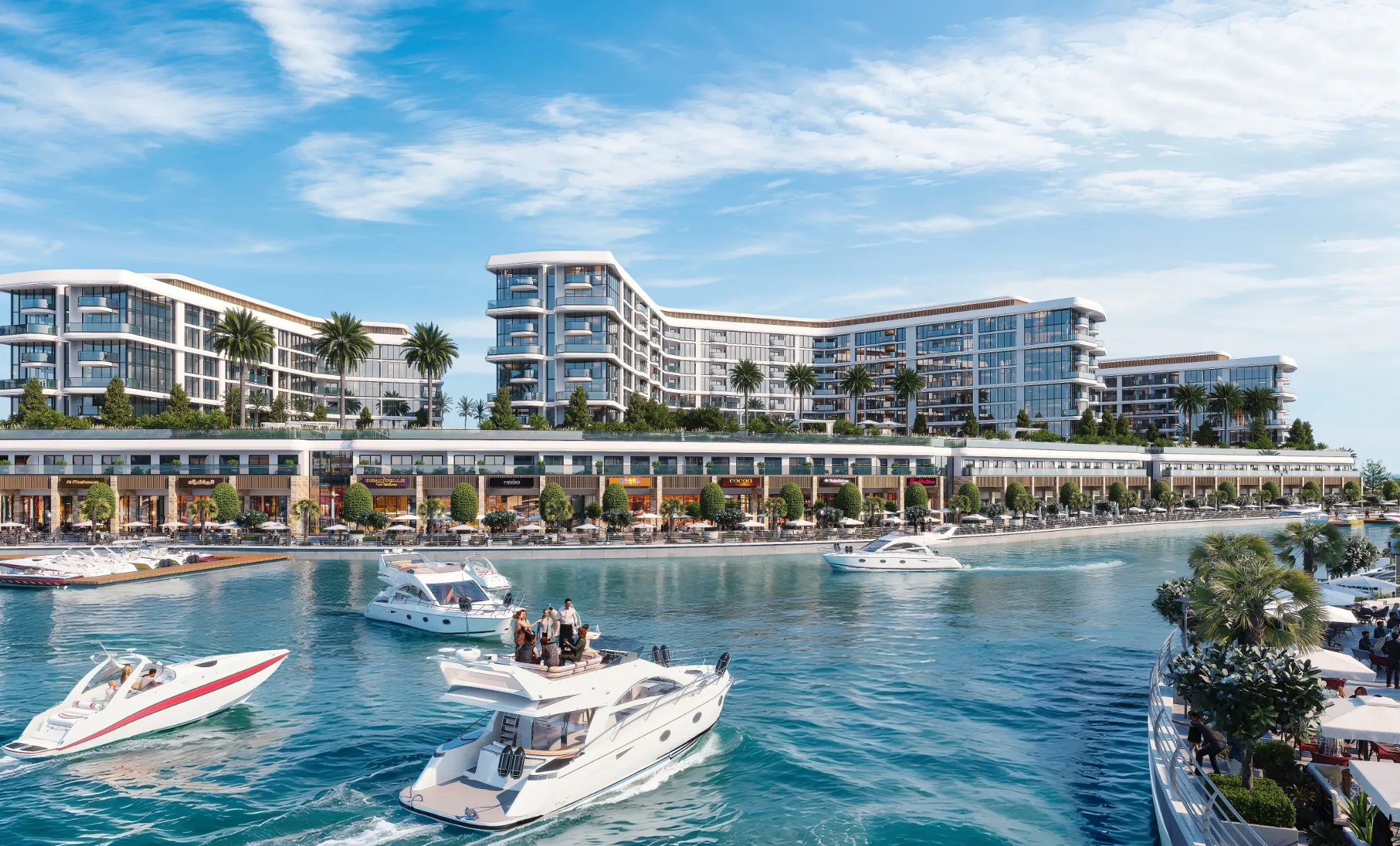 - Vibrant waterfront promenade with boutique cafés, fine dining, and upscale retail outlets