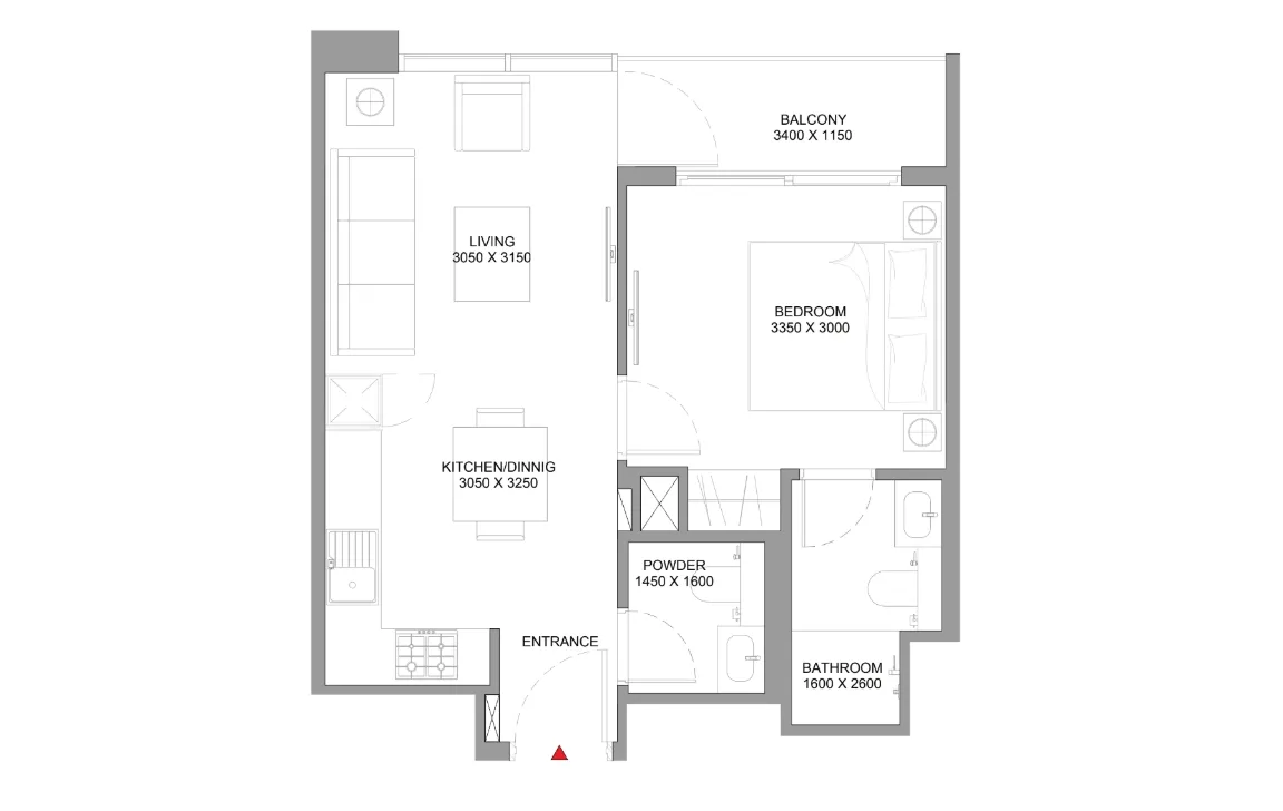 1 Bedroom  (Type A) - 512.36 - 513.98 SQ.FT.