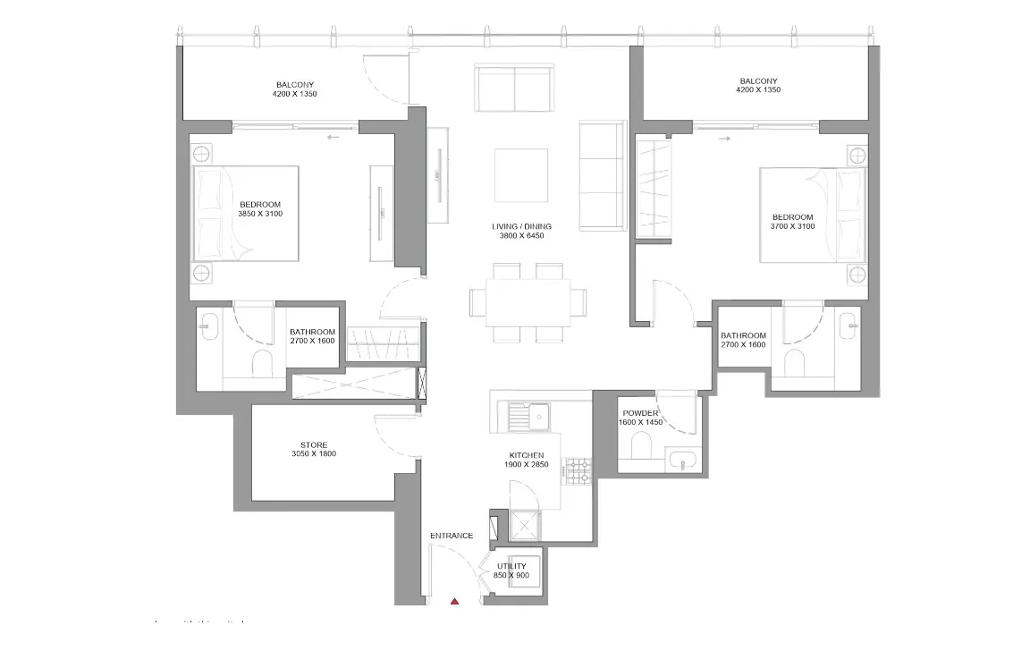 2 Bedroom (Type A) - 1,216.86 SQ.FT.