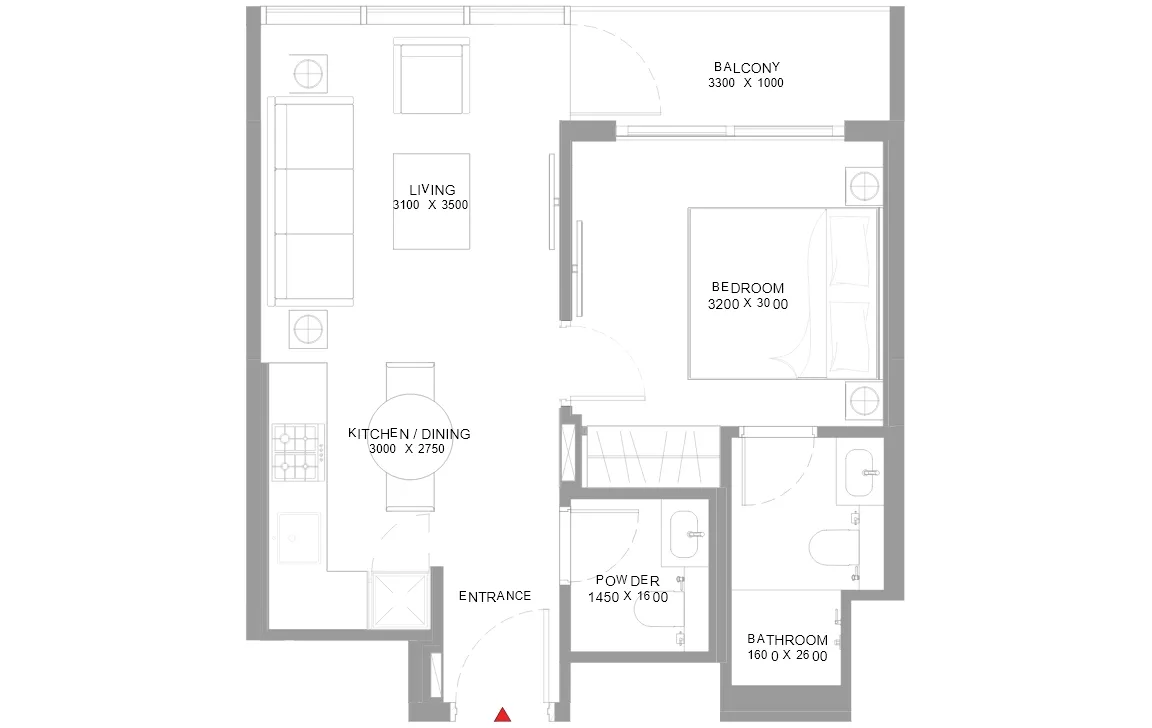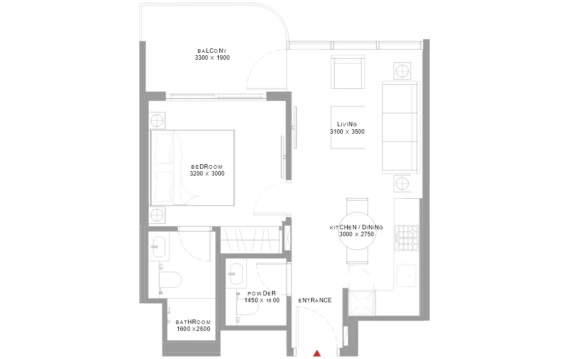 1 Bedroom (Type B) - 545.19 SQ.FT.