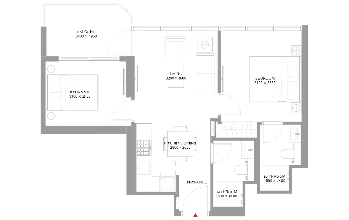 2 Bedroom (Type C) - 809.34 SQ.FT.