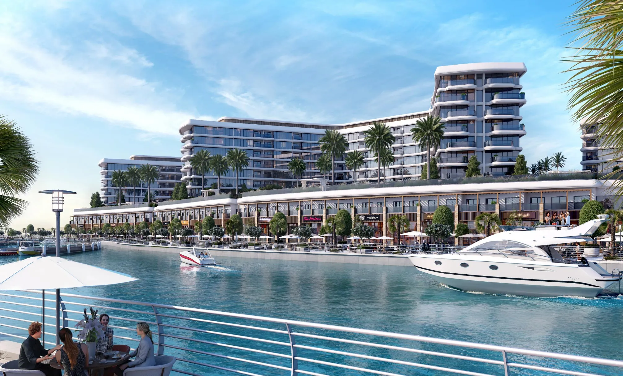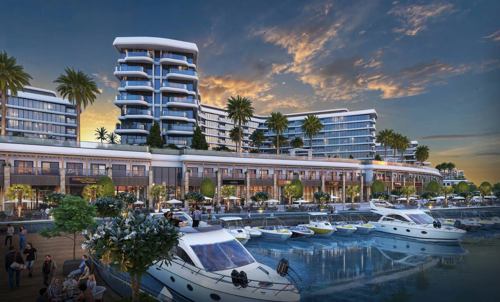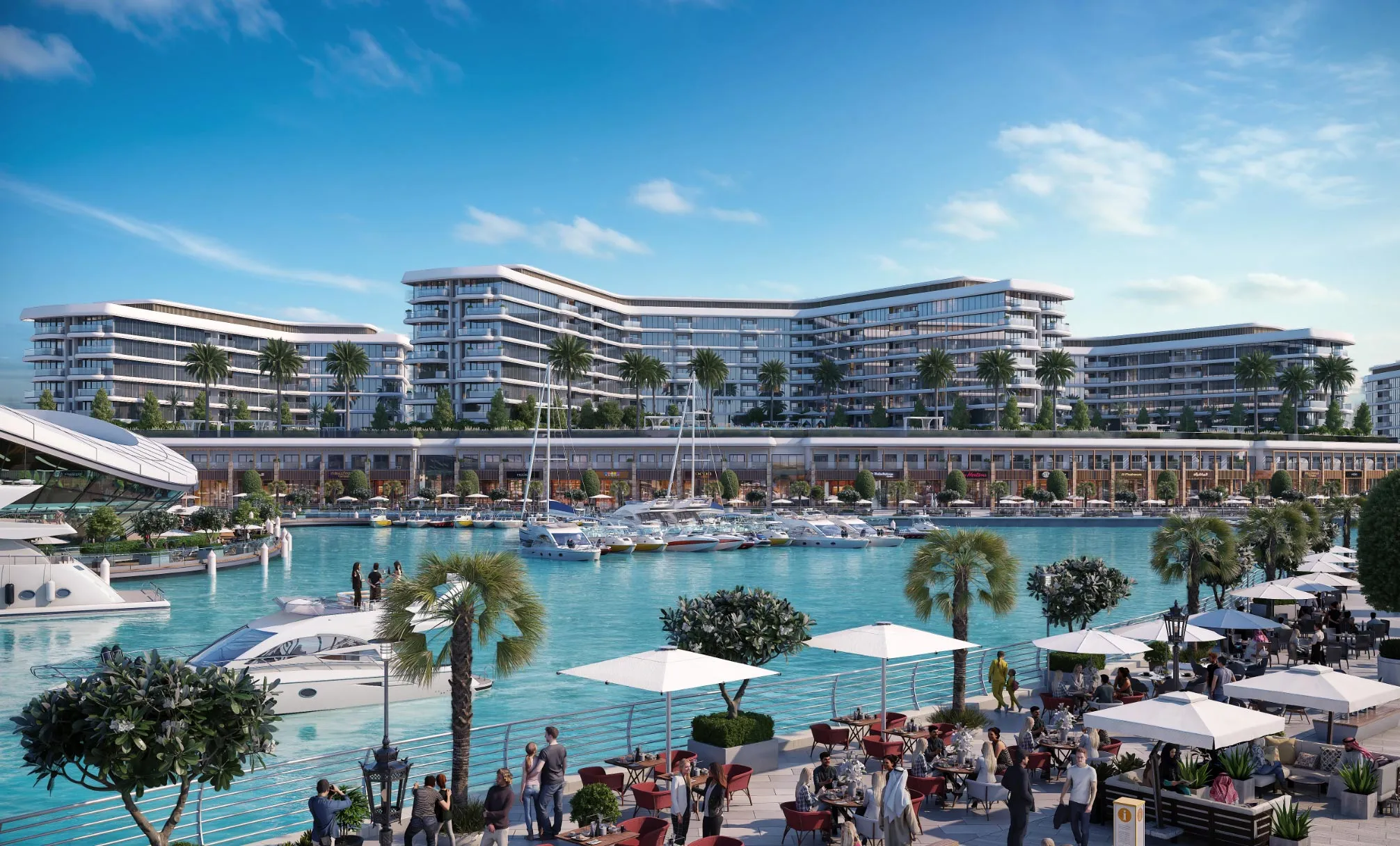 • Retail boutiques, cafés, and gourmet dining along the marina promenade